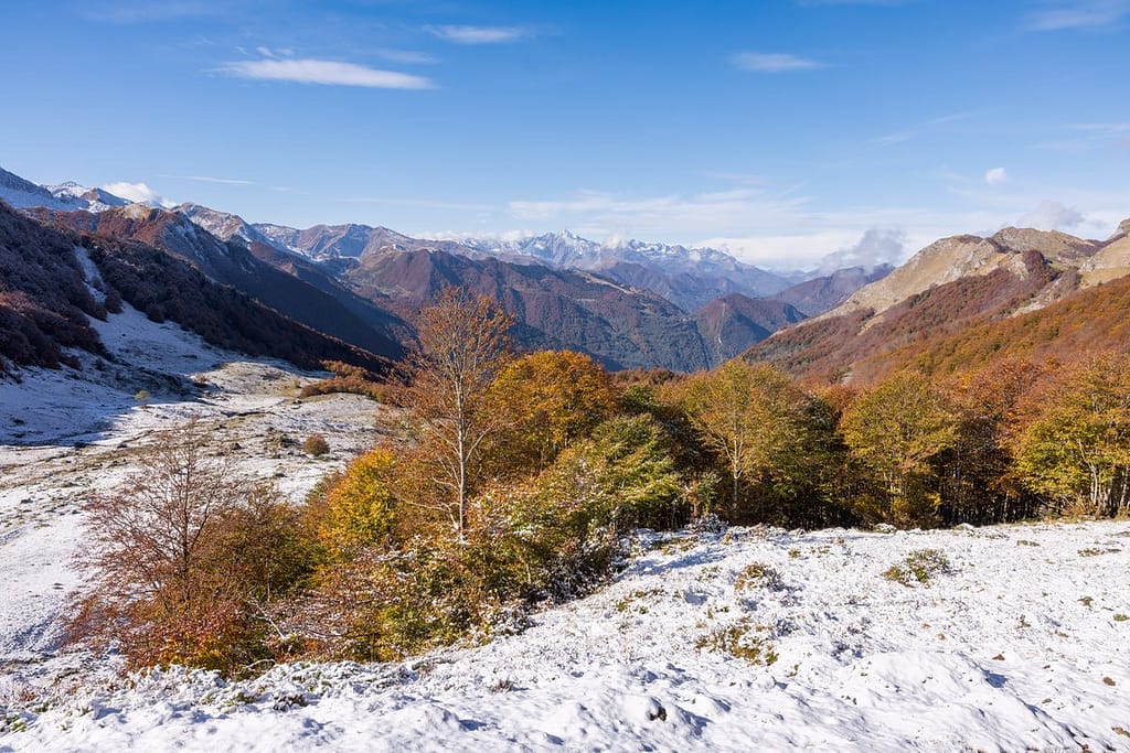 2023-11-07 Vandaag gaan we wandelen naar Étang de Labant in de Pyreneeën. We waren weer vroeg van huis vertrokken om volop te kunnen genieten van deze dag. Het is al november en de dagen worden kort. Om 8.00 uur waren we op plaats van bestemming, de parkeerplaats “Parking de Coumebière” in de Ariège. Om hier te komen zijn we vanaf Saint-Girons naar Aulus-les-Bains gereden en vervolgens hebben we de D8f richting Port-de-Lers gevolgd. Vlak voor onze aankomst hadden we vanuit de auto al een prachtig uitzicht.