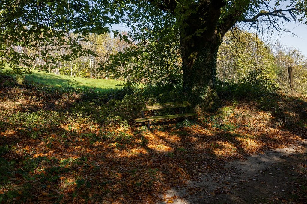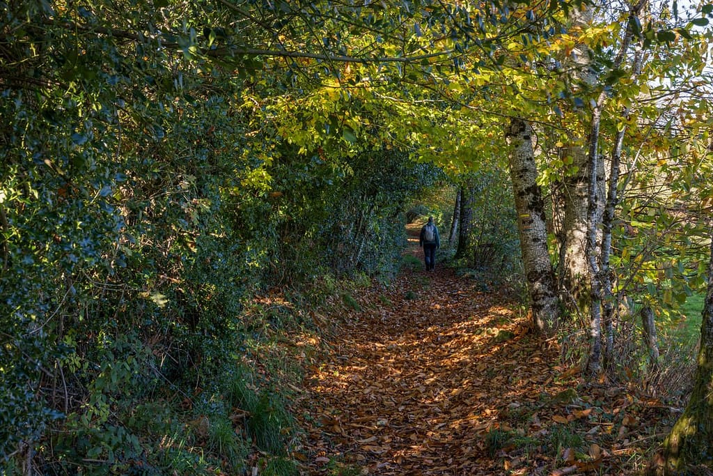 Ook van deze dag, met prachtige herfstkleuren en uitzichten, hebben we weer genoten. Gedurende de hele dag zijn we niemand anders tegengekomen dan alleen de bewoners van aanliggende huizen. Ook op de kleine weggedeeltes waarover we liepen hebben we geen auto gezien. Wat een rust.