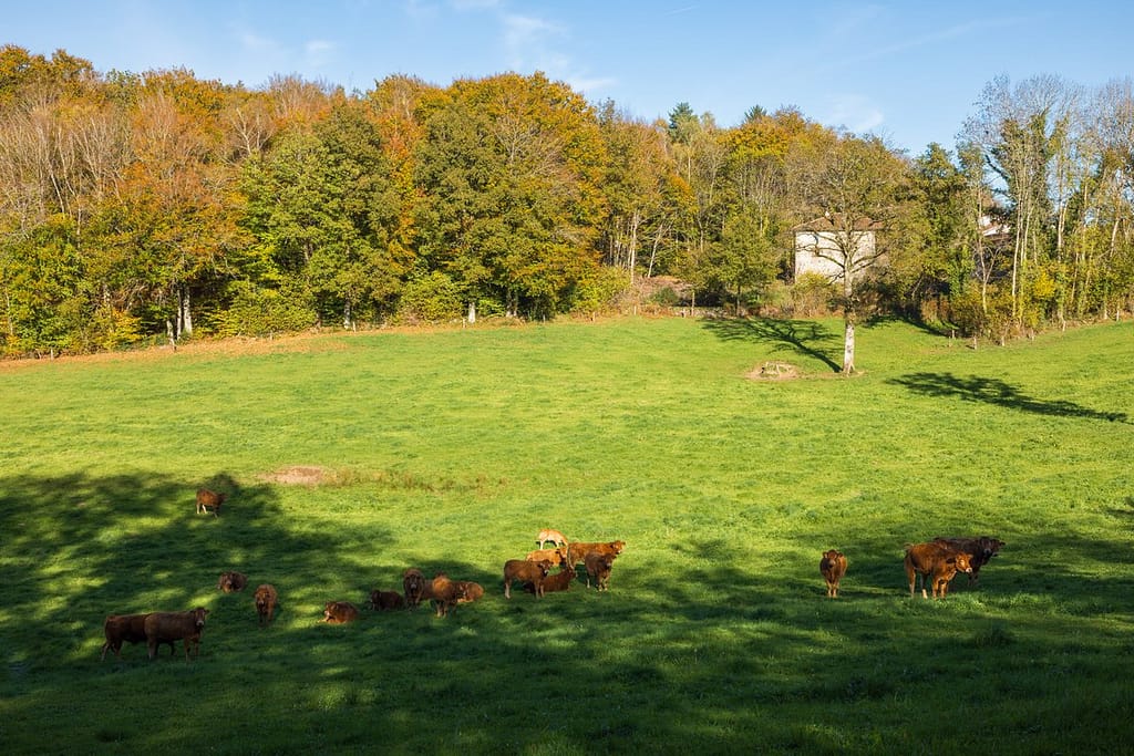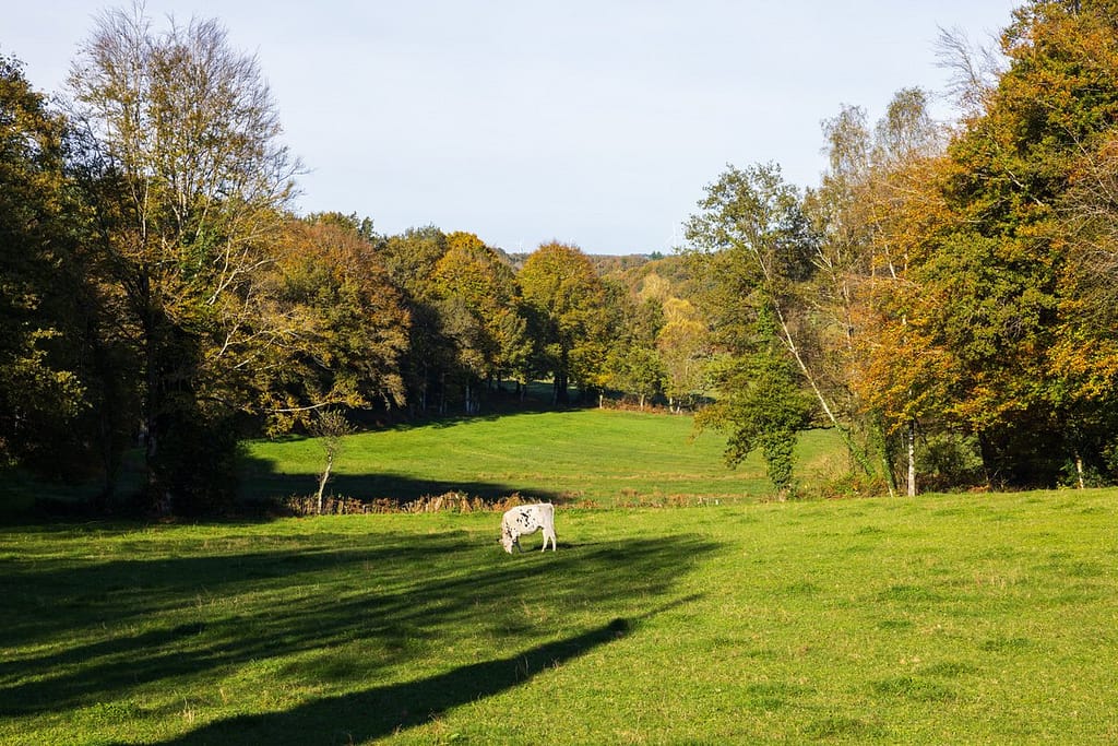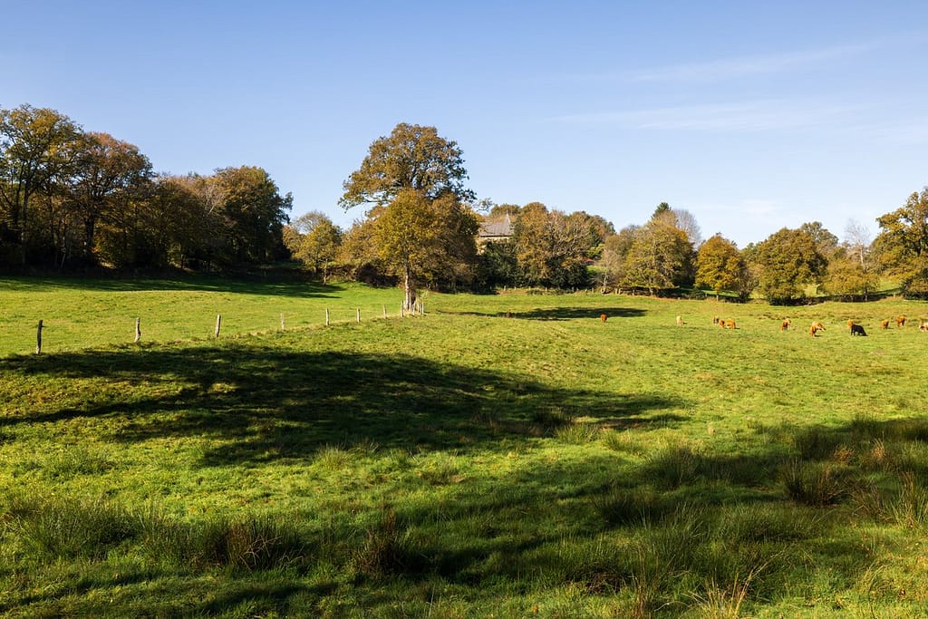 De wandeling loopt door het heuvelachtige gebied te zuidwesten van Latronquière. We lopen voornamelijk over paden tussen de weides door, bospaden, onverharde wegen en een klein gedeelte asfalt wegen. Het landschap bestaat uit mooie groene weides, met hier en daar wat koeien die nog buiten lopen, omringd door prachtige oude bomen.