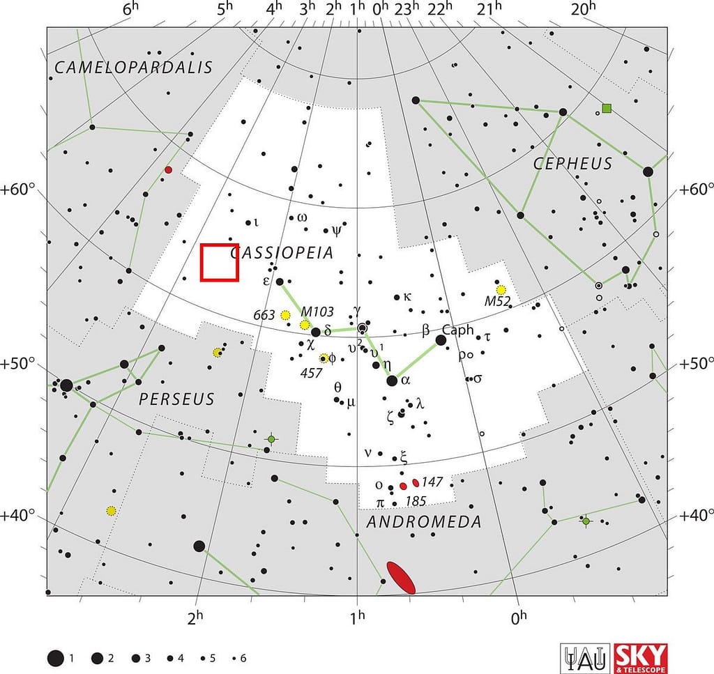 Deze sterrenbeeld afbeelding is van IAU en Sky & Telescope magazine (Roger Sinnott & Rick Fienberg) CC-BY-3.0