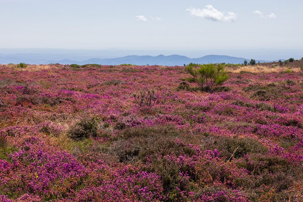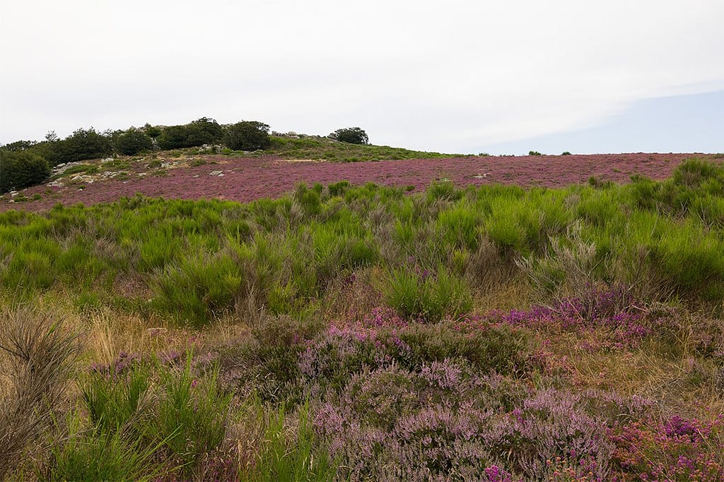 De weg ernaar toe was al een traktatie op zich, vooral het laatste stuk. Van het ene op het andere moment veranderde de omgeving en zagen we volop bloeiende heide langs de weg. We zijn een aantal malen gestopt om foto’s te maken. Na bijna 3 uur rijden kwamen we vroeg aan in het plaatsje Douch waar de wandeling begon.