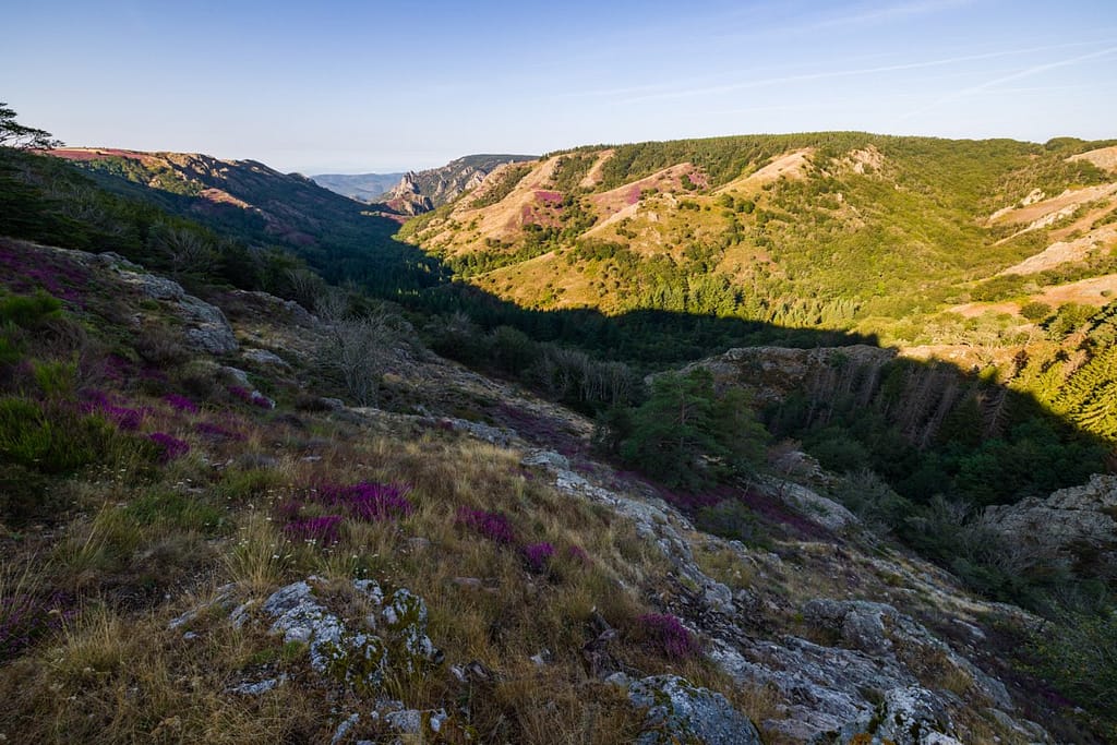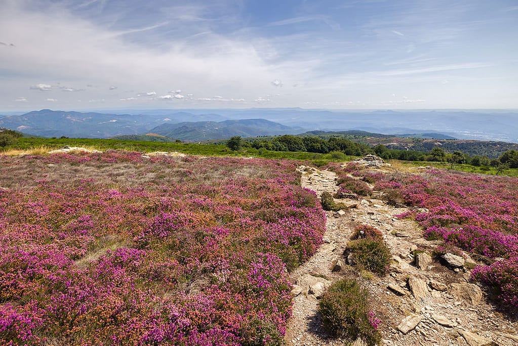 Voorafgaand hebben we contact gezocht met het Office de Tourisme van Rosis. Na enige malen met ze gesproken te hebben konden we het juiste moment kiezen. We wilden er graag op het goede moment zijn, als de dieproze heide volop in bloei staat en voorkomen dat we voor niets rijden, want daarvoor is het te ver weg. Zoals altijd vertrekken we ’s morgens vroeg vanaf huis, rijden een paar uur, gaan wandelen en moeten dan ’s avonds weer thuis zijn.