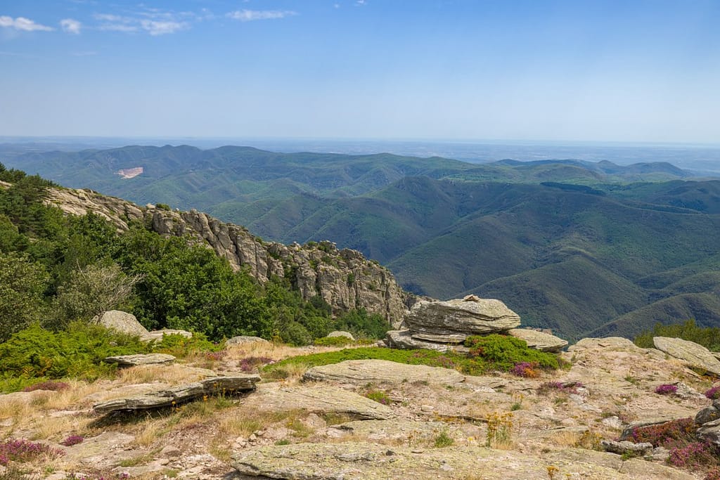 28-07-2023. Vandaag hebben we Mont Caroux in het departement de Hérault bezocht. We waren deze locatie bij toeval tegengekomen op zoek naar een wandeling en verbaasden ons over de foto’s van dit gebied. Na onze vele wandelingen in de Pyreneeën wilden nu eens iets anders. Het ligt zo’n 30 km boven de bekende Zuid-Franse plaats Beziers, een plaats die we nog kennen uit onze jonge jaren toen we in Zuid-Frankrijk op vakantie waren. In onze herinneringen warm en vooral erg droog.