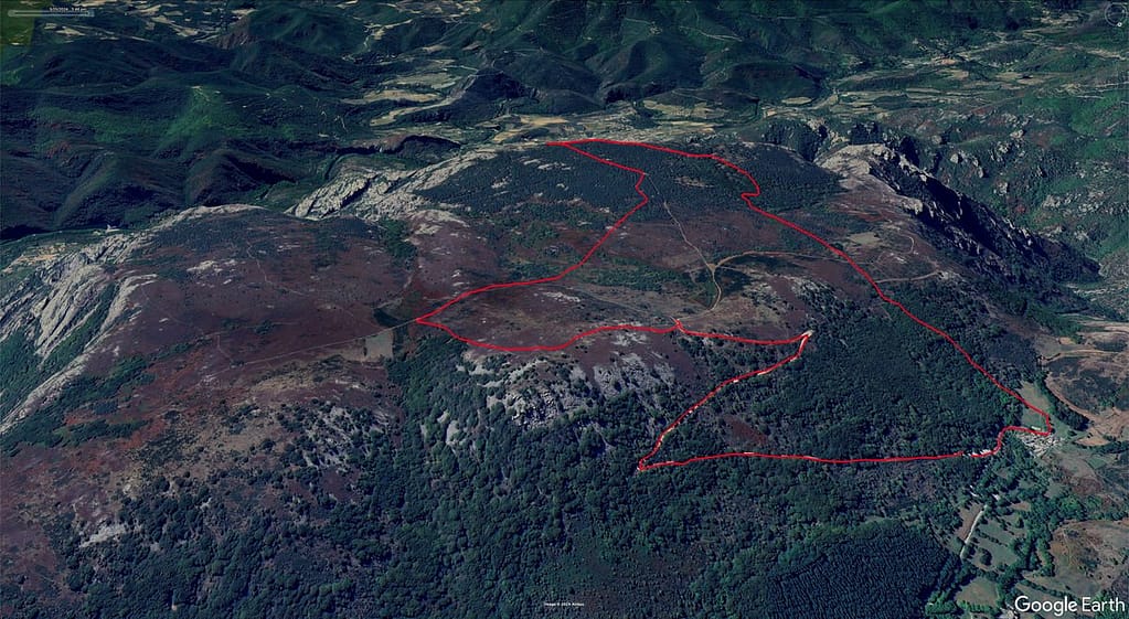 Nog wat extra informatie indien je geïnteresseerd bent om in juli dit gebied te bezoeken. Op onderstaande Google Earth Pro afbeelding van deze wandeling zie je het hele plateau met alle paden. We zijn vandaag niet verder naar links gelopen, omdat het gedeelte voornamelijk uit heide bestaat. In juli is dit prachtig en een echte aanrader om ook daar naar de randen van het plateau te lopen. Na het zien van deze video en die van 28 juli vorig jaar zou je ook kunnen kiezen om je eigen route te creëren aan de hand van Google Earth Pro met deze informatie.