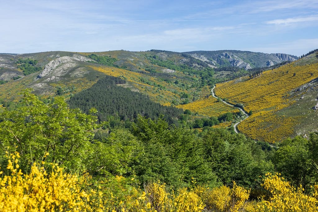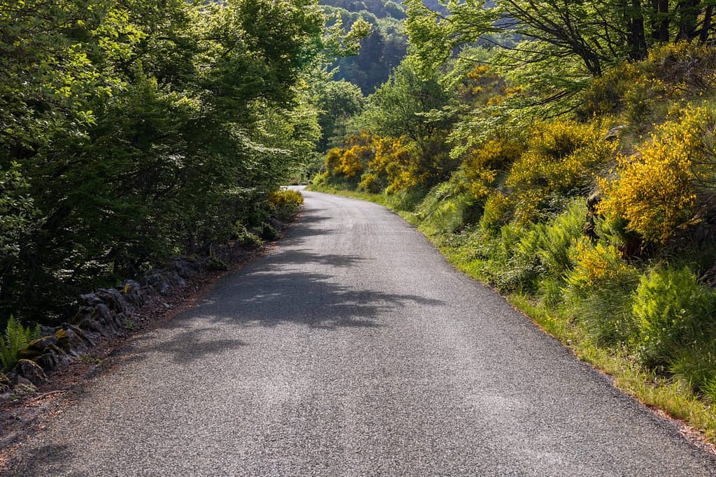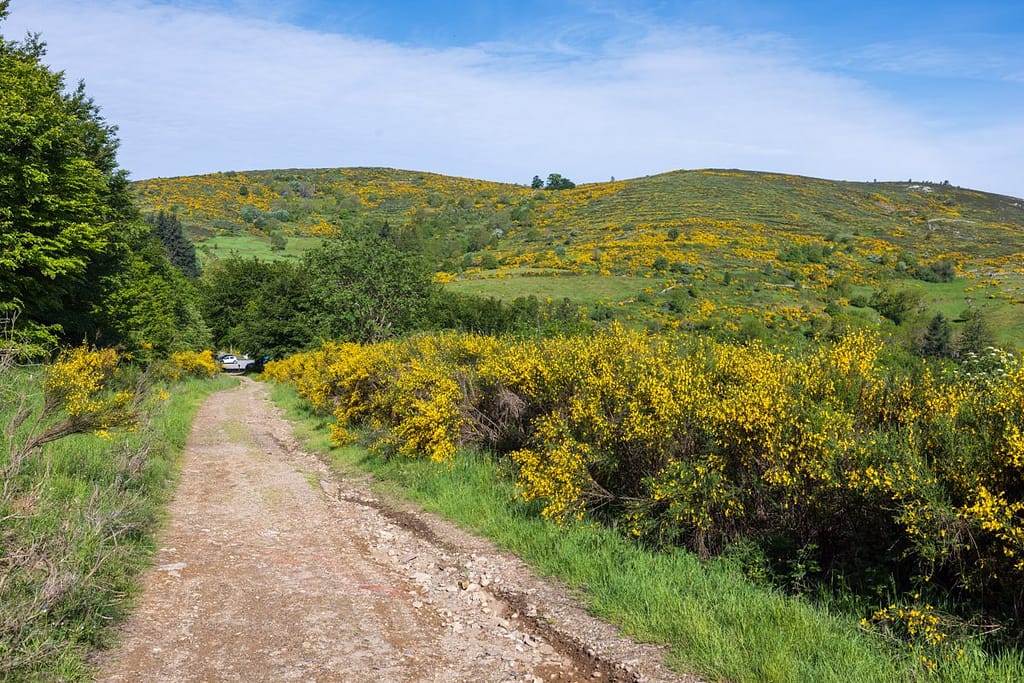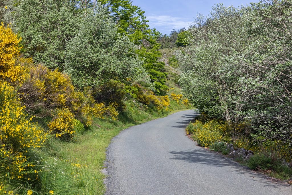 Eenmaal in het gebied rondom Mont Caroux aangekomen stond er werkelijk overal brem langs de weg. We rijden helaas tegen de zon in, waardoor het niet goed zichtbaar is op de video van de dashcam. We zijn gewoon gestopt en hebben een paar foto’s gemaakt om deze bloemenpracht vast te leggen.