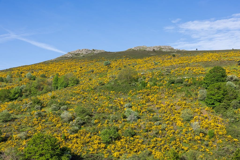 25-05-2024. Vandaag hebben we opnieuw een bezoek gebracht aan Mont Caroux in het departement Hérault (34). Vorig jaar waren we hier op 28 juli toen de hele omgeving dieproze gekleurd was door de bloeiende heide. Tijdens het bezoek van vorig jaar viel het ons op, dat er in deze omgeving zoveel brem stond. We besloten tijdens die wandeling, dat we hier dit jaar zouden terugkeren in de periode dat de brem in bloei staat.