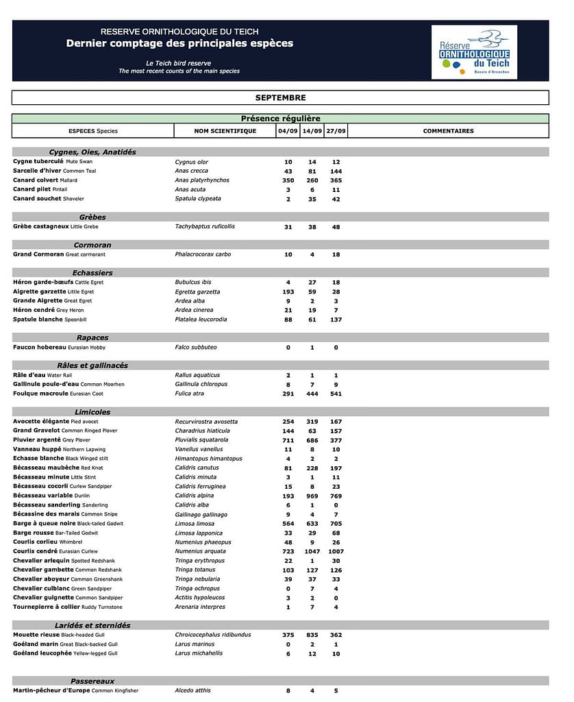 Hierbij de link naar de website van Réserve Ornithologique du Teich. Op deze website staan ook maandelijkse tellingen van de vogels in dit gebied. Een volgende keer gaan we in de winter of in het voorjaar. Alle vogeltellingen van de afgelopen jaren staan op hun website en dat geeft een goede mogelijkheid om de juiste periode uit te kiezen om bepaalde vogels te zien.