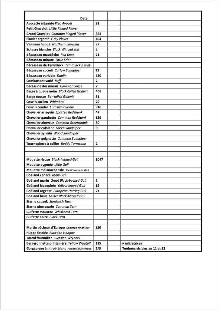 De link naar de website van Réserve Ornithologique du Teich. Op deze website staan ook maandelijkse tellingen van de vogels in dit gebied. Onderstaand de telling van september 2018.