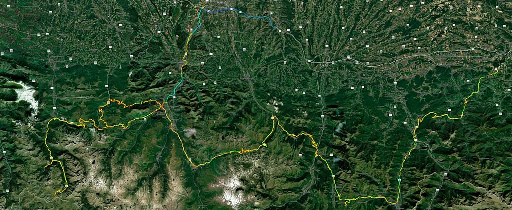 Aan het einde van deze route kwamen we uit bij het plaatje Gez. Hier pakten we de D102 op richting Agos-Vidalos om daarvandaan naar Lourdes te rijden. Vanaf hier zijn we richting Tarbes gereden om daar de snelweg op te gaan richting huis. Onderstaand de gereden route.