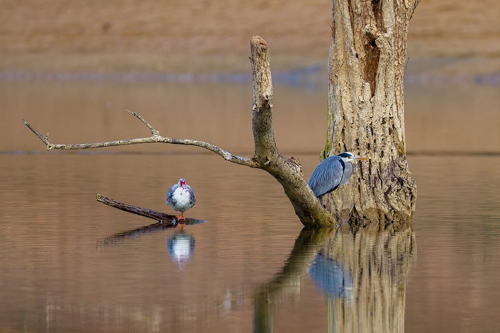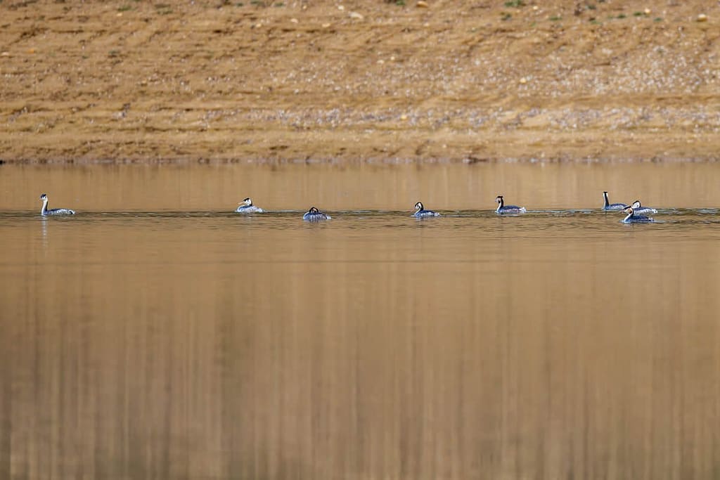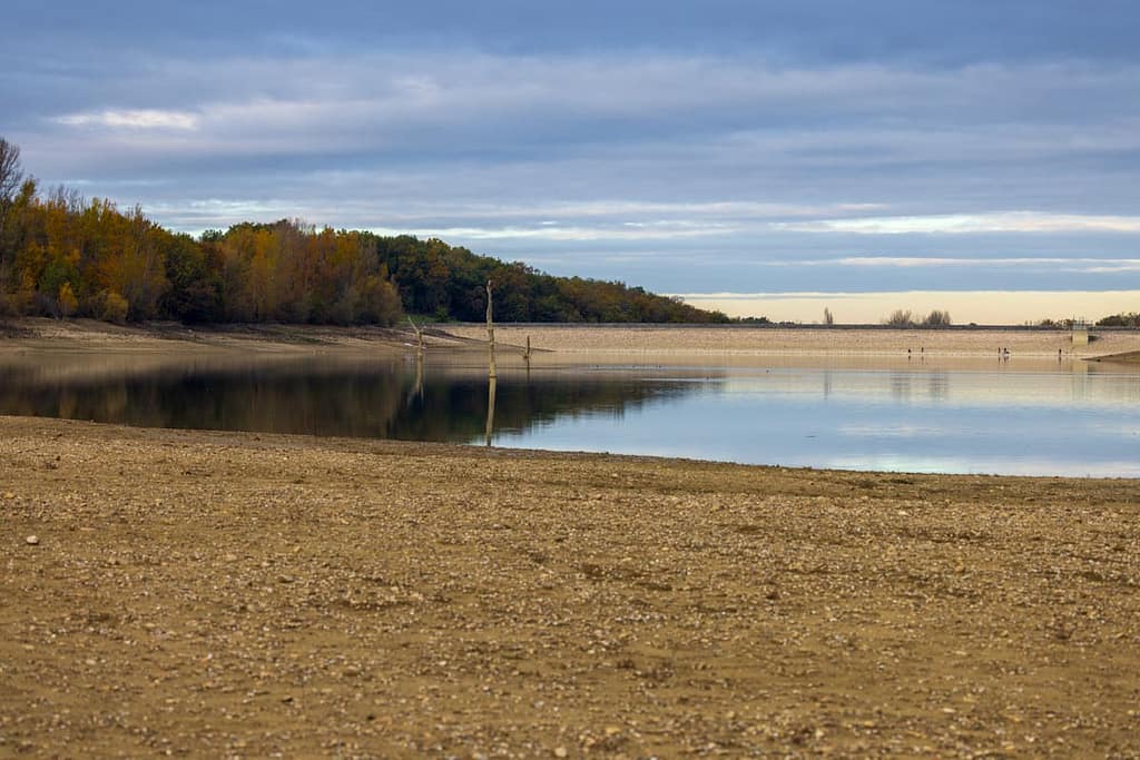 Het was 15.15 uur toen we aankwamen. Tot onze verbazing stond het meer erg laag, dat hadden wij nog nooit zo gezien. Er waren “zandstranden” waarover we konden lopen. Het meer was daardoor een stuk smaller dan dat we gewend waren. Ook zijn er nu boomstronken in het stuwmeer zichtbaar, die als het water hoog staat onzichtbaar zijn. Dat zijn nu mooie zitplaatsen voor de vogels.