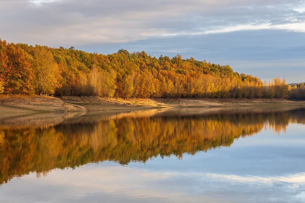 De herfstkleuren zijn prachtig. Overal in de Tarn-et-Garonne staan eikenbomen, waardoor we makkelijk kunnen zien wanneer het op zijn mooist is om de natuur in te gaan om van de herfstkleuren te genieten. Het is hier nog steeds zwaar bewolkt, maar af en toe komt de zon tussen de wolken door en dat maakt de kleuren nog mooier. Toen wij van huis vertrokken was de zon al doorgebroken.
