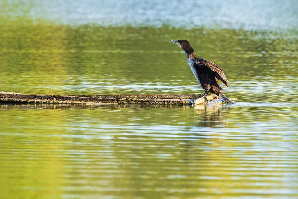 Normaal gesproken vliegen hier ’s morgens ook ijsvogels rond, we hebben ze nu niet gezien of gehoord. Ook de plevieren schitterden door afwezigheid evenals andere oevervogels. Dus lopen we door naar de volgende observatiehut “Observatoire du Chasseur” aan het andere meer, “Etang de Grévilliou”. Ook deze hut ligt goed op de zon in de morgen. Aan het eind van de morgen kijk je steeds meer tegen de zon in en dat is voor de fotografie niet handig.