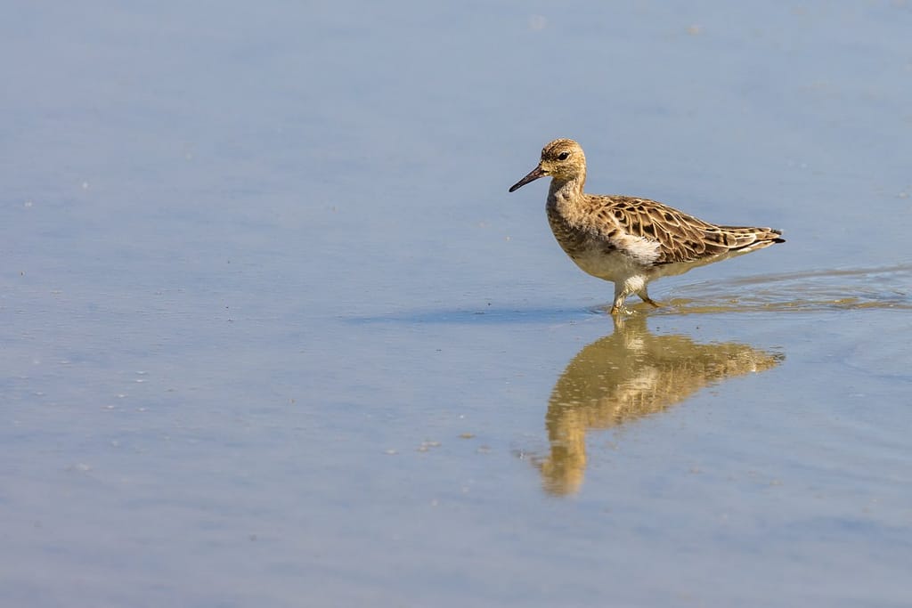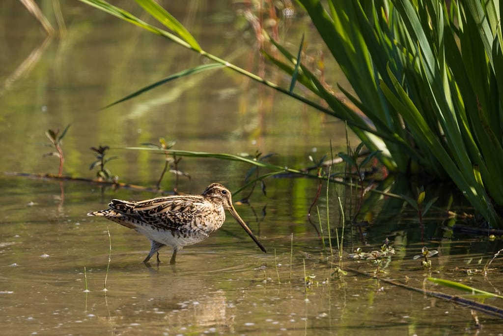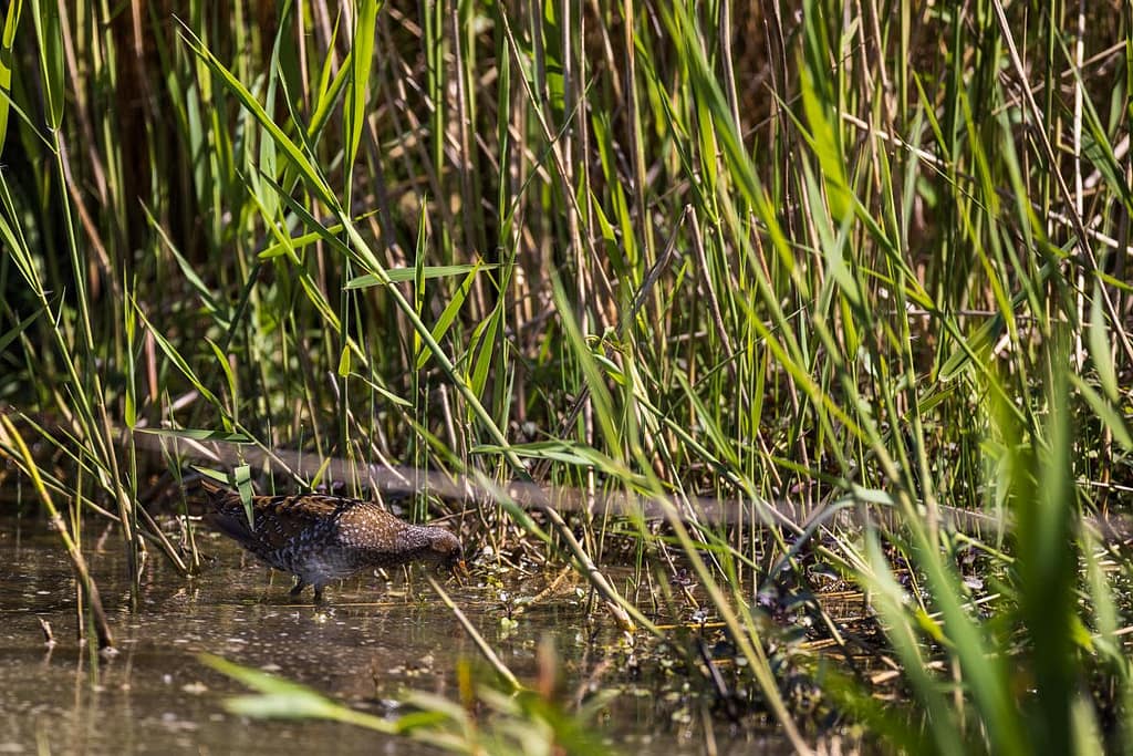 Vanaf hier lopen we nu een stukje terug om de hutten te bezoeken die aan dit pad liggen en die we op onze heenweg gepasseerd zijn. Allereerst gaan we naar “Observatoire de la Bécassine”. Dit is in de middag een goede plek om te zitten en er is vaak veel te zien. Vandaag kwamen er ook verschillende soorten langs. Een paar kemphanen, een watersnip, een porseleinhoen, een groep koereigers, een koppeltje steltkluten en een koppeltje futen en natuurlijk de wilde eenden. De opvallende afwezigen hier waren vandaag de andere reigersoorten en de kleine plevieren. Al met al viel het ook hier qua aantallen vogels tegen. We kunnen nu wel zeggen dat er minder vogels zijn dan andere jaren.