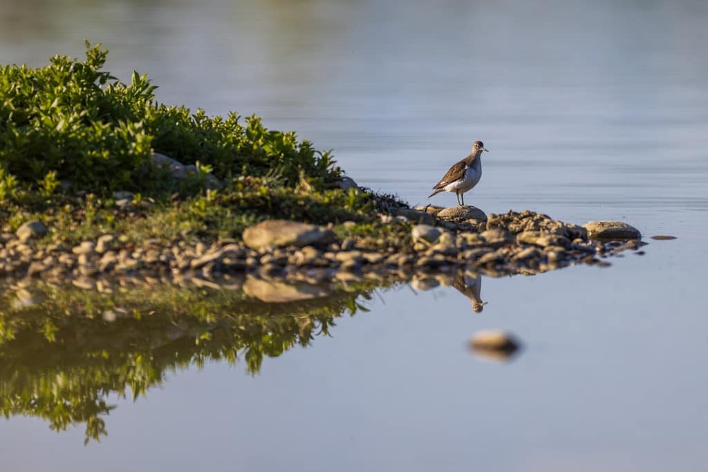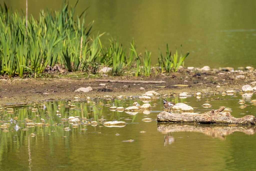 We lopen terug naar parking 2 en nemen vanaf daar het pad terug naar parking 1 waar onze auto staat. Dan lopen we dus weer langs het meer van vanmorgen. Er liggen hier nog twee kleine hutten “Observatoire de l’Echasse” en “Observatoire de la Sterne”, die niet op de plattegrond staan. Deze observatiehutten zijn waarschijnlijk later neergezet. Vanuit deze hutten kijk je nu met de zon in de rug op het eilandje dat voor deze hutten ligt. Normaal gesproken is het bevolkt met visdiefjes en kleine plevieren. Er was nog geen visdief aanwezig, maar wel enkele kleine plevieren. Op zich jammer want de visdiefjes zorgen altijd voor wat spektakel.