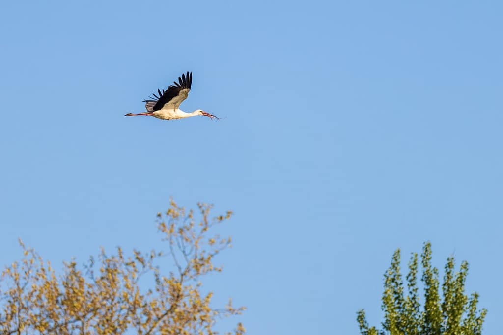 Aansluitend kwamen er nog kwikstaarten, eenden, grauwe ganzen en een aalscholver langs. In de lucht vlogen de ooievaars af en aan met takken voor hun nesten. Er zijn hier ieder jaar veel ooievaarsnesten te zien.