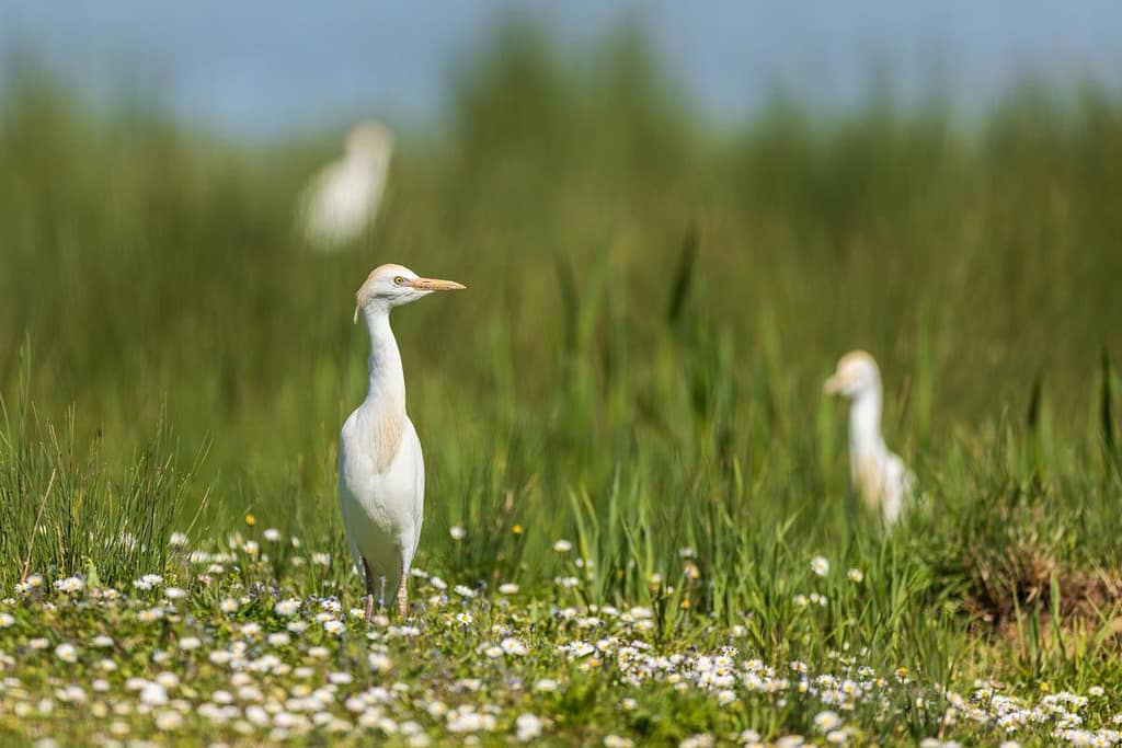 Domaine des Oiseaux ligt aan een route van trekvogels en is daardoor een interessante plek om vogels te spotten. De waterstand in de meren is sterk afhankelijk van het grondwaterpeil en daardoor kan het voorkomen dat met name in het najaar het water gezakt is en voor veel observatiehutten de grond droog valt. Wij vinden het voorjaar de mooiste tijd om dit gebied te bezoeken, vooral vanwege de vele jonge vogels die er dan aanwezig zijn.