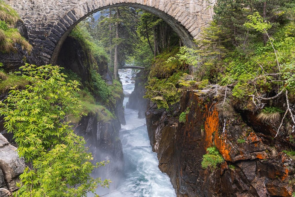 Toen we vanaf de D918 de D920 opgingen richting Cauterets duurde het niet lang, voordat we weer onder een wolkendek reden. Aangekomen op de parkeerplaats bij Pont d’Espagne was het zwaar bewolkt met hier en daar een klein stukje blauwe lucht. Maar gezien de voorspellingen hoopten we erop dat het enigszins zou opentrekken.