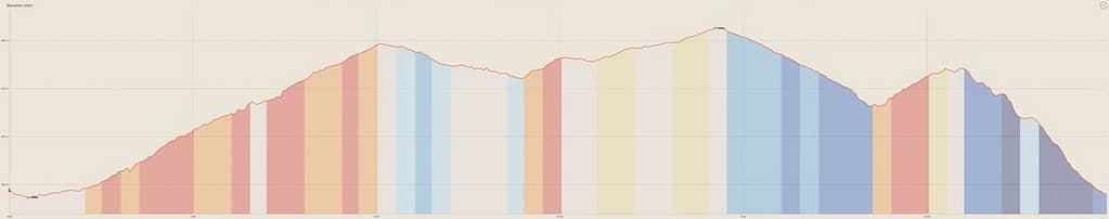 Volgens de app van Visorando was deze wandeling 11,98 kilometer lang met een hoogteverschil van 485 meter. De AllTrails app geeft aan dat het 13,28 kilometer is met een hoogteverschil van 528 meter. Volgens Google Earth Pro is het 12 kilometer met een hoogteverschil van 723 meter.