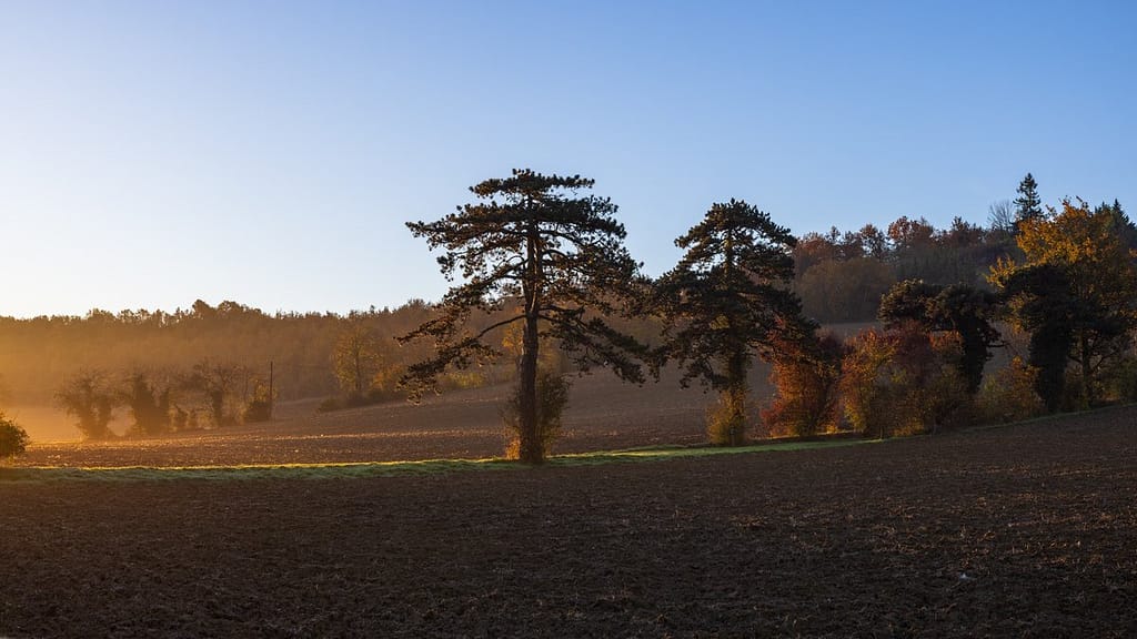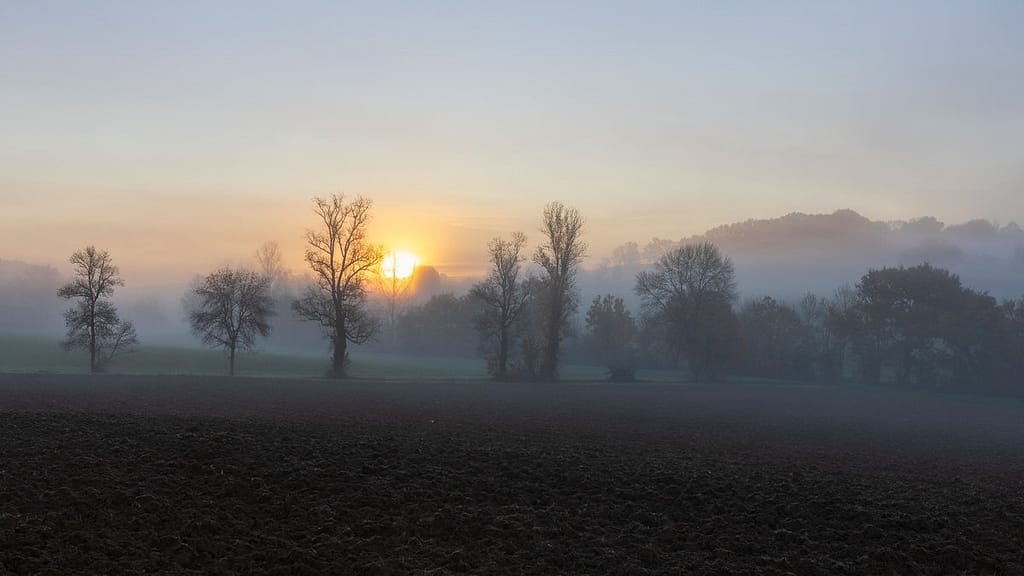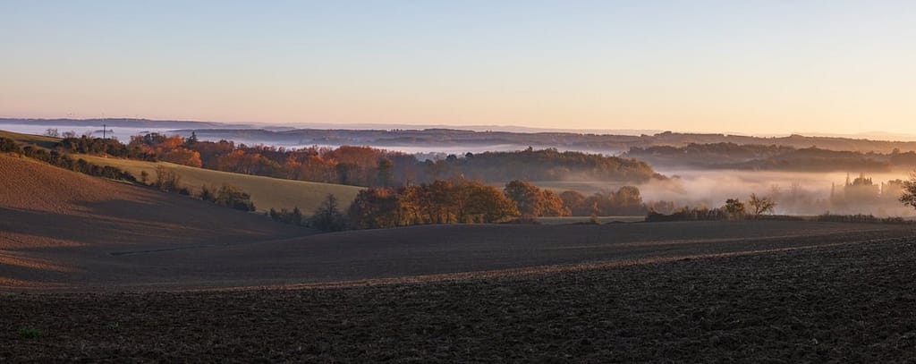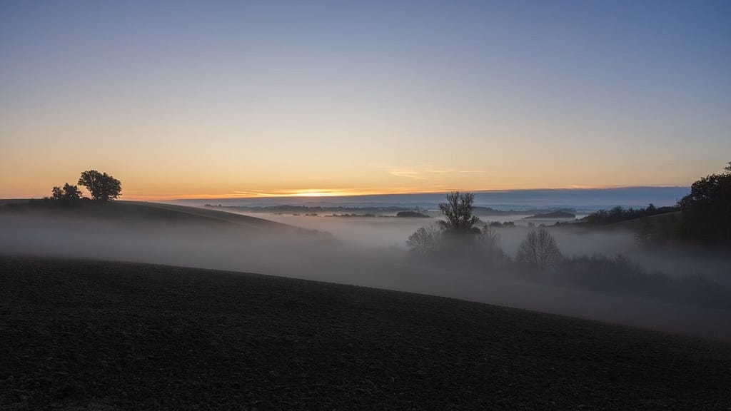 27-11-2024 Vandaag gaan we wandelen naar Chapelle de St-Ferréol en Statue St-Stapin in het departement de Tarn. We beginnen de wandeling in het plaatsje Dourgne. Om hier te komen zijn we vanmorgen vroeg vanaf huis vertrokken. Door de dichte mist onderweg komen we later aan dan gepland. De mist leverde wel een aantal mooie beelden op. Bij zonsopkomst reden we in de heuvels van het departement de Tarn en iedere keer dat we op de hoger gelegen delen reden kwamen we boven de mist uit.
