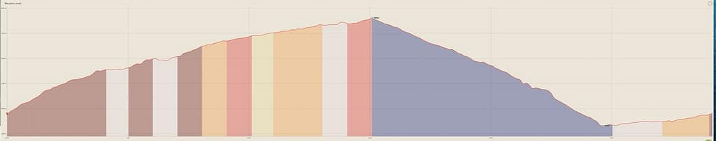 Volgens de app van Visorando was deze wandeling 5,82 kilometer lang met een hoogteverschil van 427 meter. De AllTrails app geeft aan dat het 6,77 kilometer is met een hoogteverschil van 443 meter. Volgens Google Earth Pro is het 5,91 kilometer met een hoogteverschil van 464 meter. Het gemiddelde stijgingspercentage was 16,7%.
