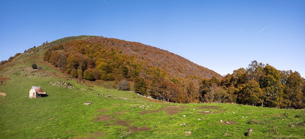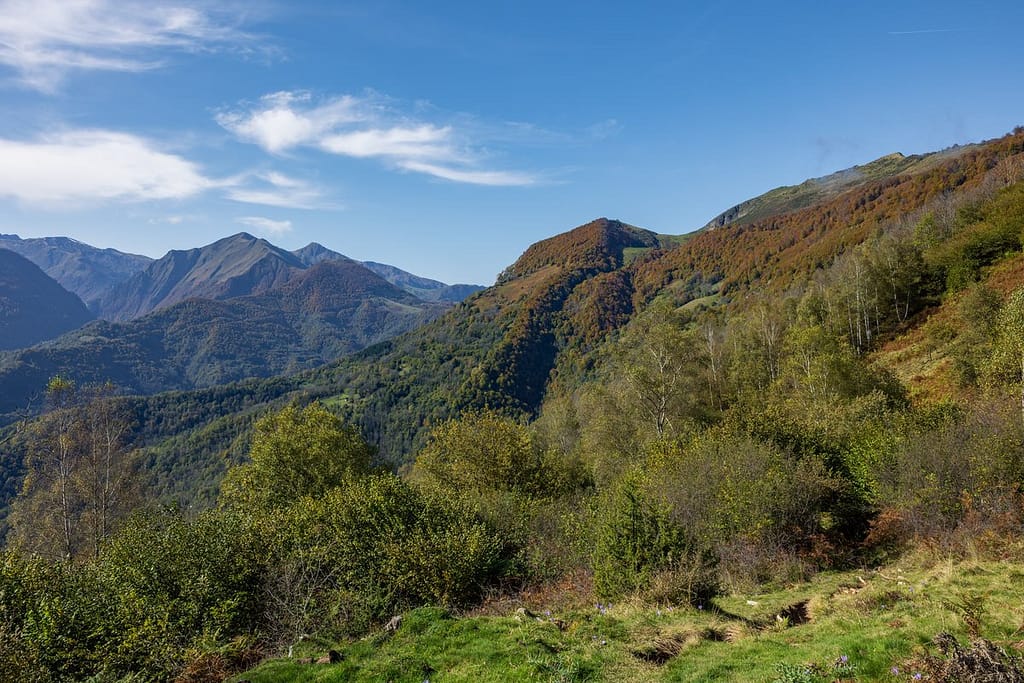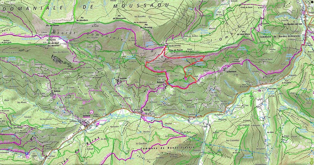 29-10-2024 Vandaag gaan we wandelen naar Col de l’Arraing in het departement Ariège. We vertrekken vanaf een erg kleine parkeerplaats, in de berm van de weg, gelegen aan de D704 tussen Uchentein en Balacet. We zijn nu op 976 meter en de Col de l’Arraing ligt op 1360 meter hoogte. Het te overbruggen hoogteverschil is niet erg groot, maar de weg ernaartoe is relatief kort. De wandeling begint dan ook met een stijgingspercentage tussen de 25 en 30 procent.
