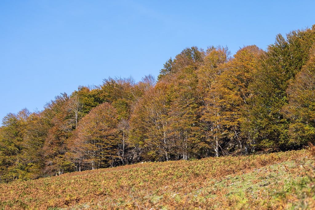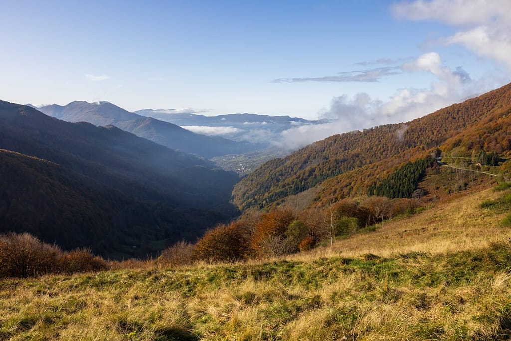 Vanaf Lac Bethmale zijn we doorgereden naar de Col de la Core op 1395 meter hoogte. Dit is één van onze favorieten in de herfst vanwege de intensieve verkleuring. En ook hier waren we niet de enige in deze vakantieperiode.