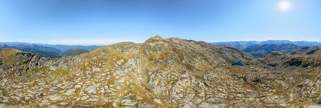 Hieronder een 360° panorama gemaakt met de drone. Rechts zie je het Étang d’Arbu liggen, in het midden Pic des Trois Seigneurs en aan de linkerkant de bergkam waarover we terug gaan lopen.