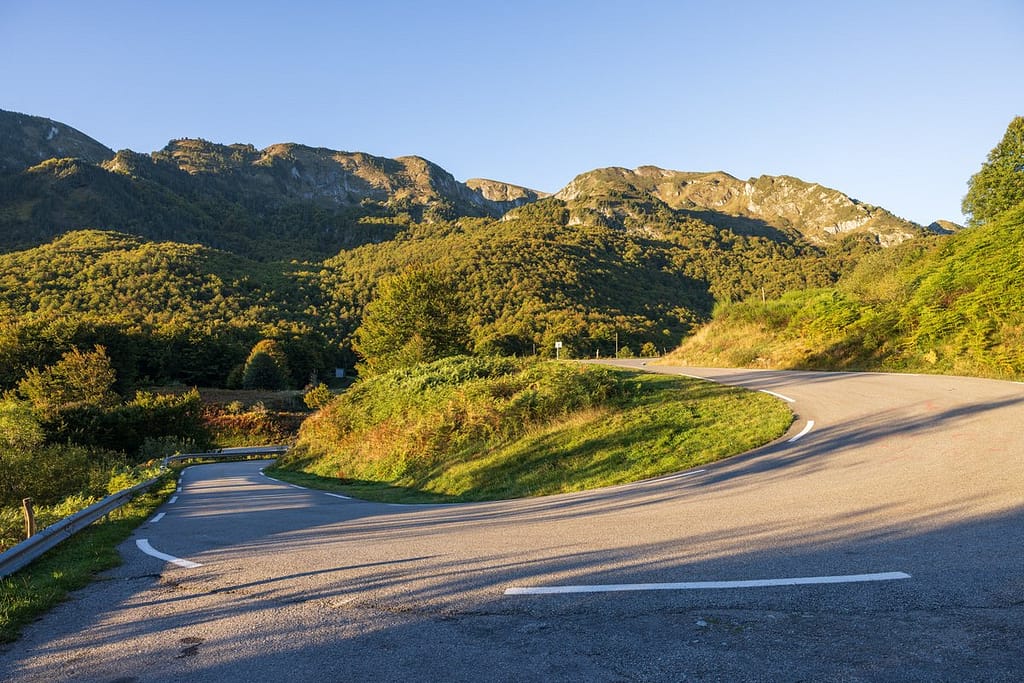 Wij beginnen aan onze wandeling naar Étang d’Arbu vanaf een kleine parkeerplaats, geschikt voor maximaal 2 auto’s, die in de haarspeldbocht ligt en moeten dus aan het einde van de wandeling terug over de weg. We starten vanaf 1402 meter hoogte. Het is nog vroeg in de morgen en de zon komt net boven de bergen uit. Hierdoor geeft het licht een mooie warme gloed over de natuur.