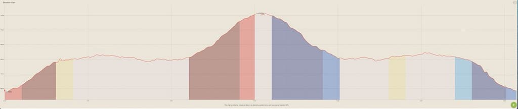 Volgens de app van Visorando was deze wandeling 6,14 kilometer lang met een hoogteverschil van 294 meter. De AllTrails app geeft aan dat het 6,82 kilometer is met een hoogteverschil van 342 meter. Volgens Google Earth Pro is het 6,23 kilometer met een hoogteverschil van 423 meter. Dit laatste is absoluut niet waar. Het gemiddelde stijgingspercentage was 14,3%.