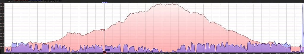 Hieronder is te zien waar we uiteindelijk gelopen hebben. Het hoogteverloop van de wandeling staat op de grafiek eronder.
